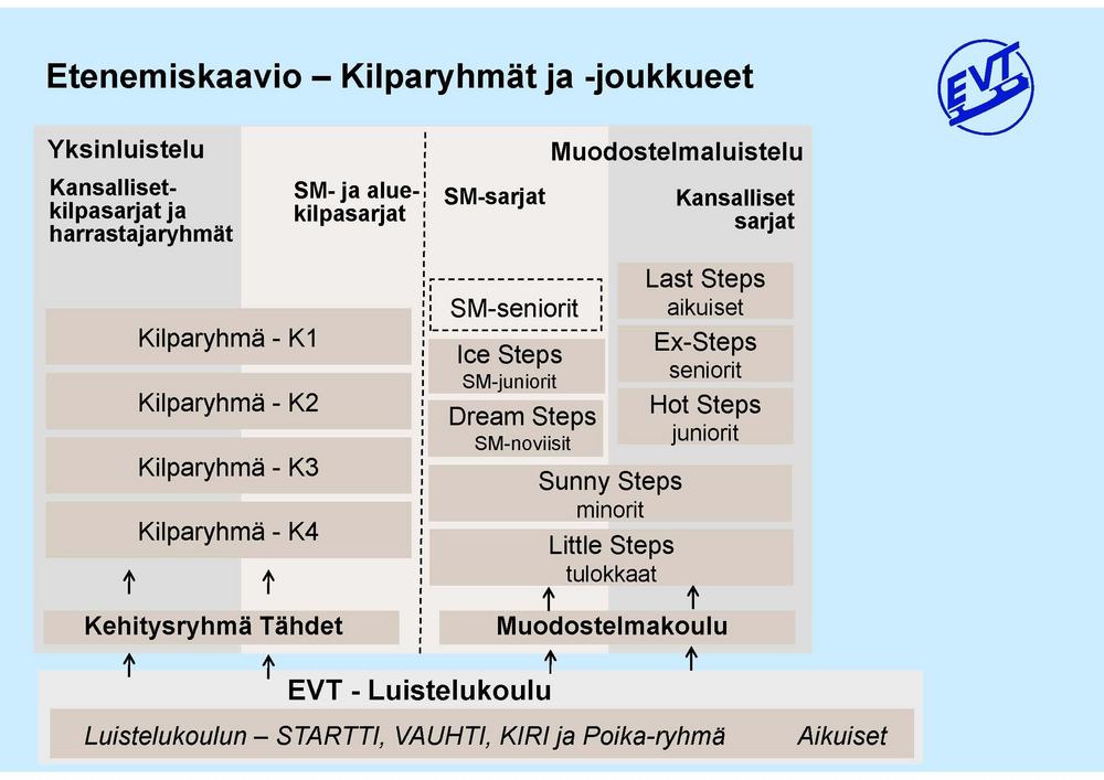 EVT tarjoaa luisteluelämyksiä kaikenikäisille ja kaiken tasoisille luistelijoille. Tarjonta kattaa luistelukouluryhmät, kehitysryhmät, yksinluistelun harrastus- ja kilparyhmät ja muodostelmajoukkueet.…