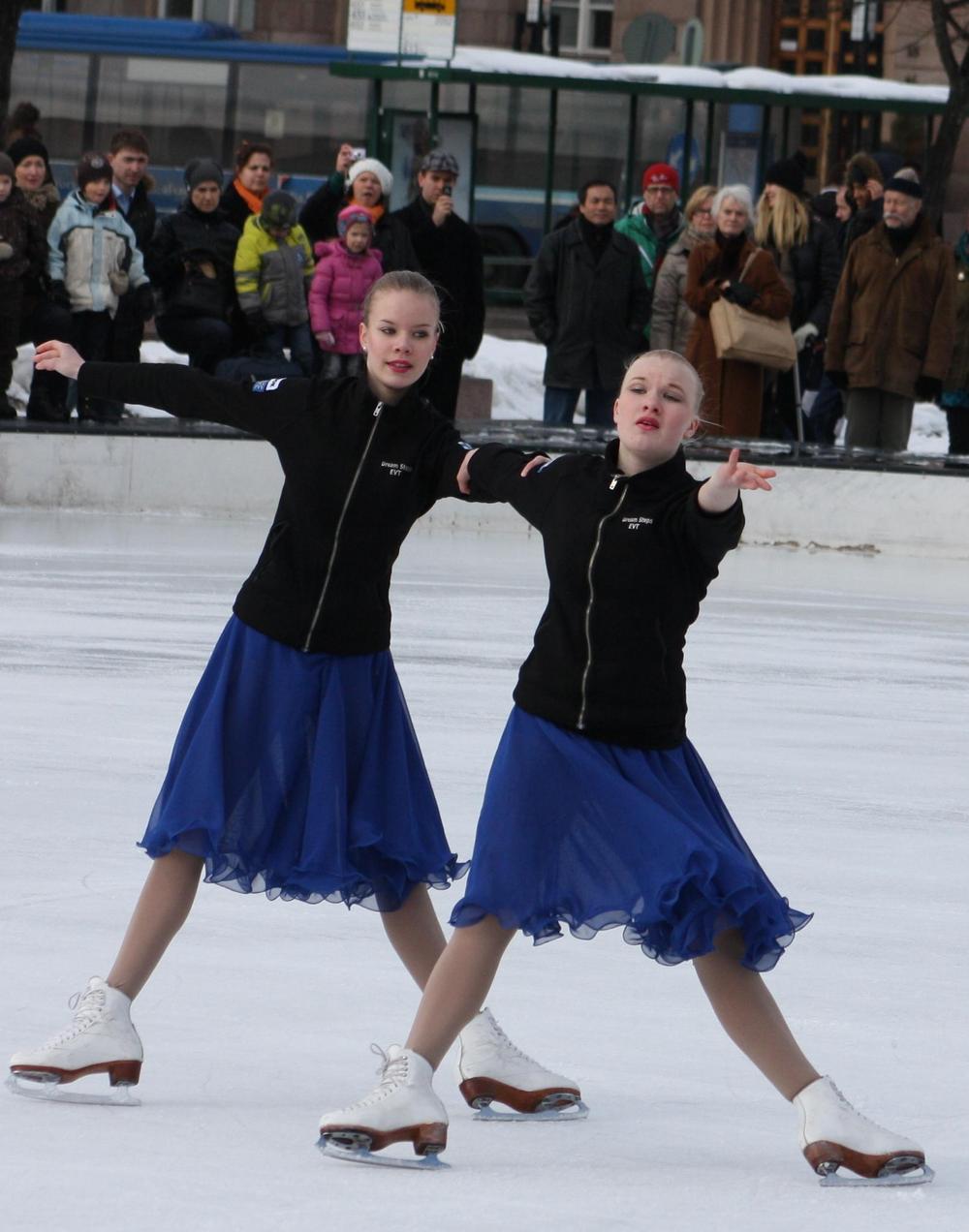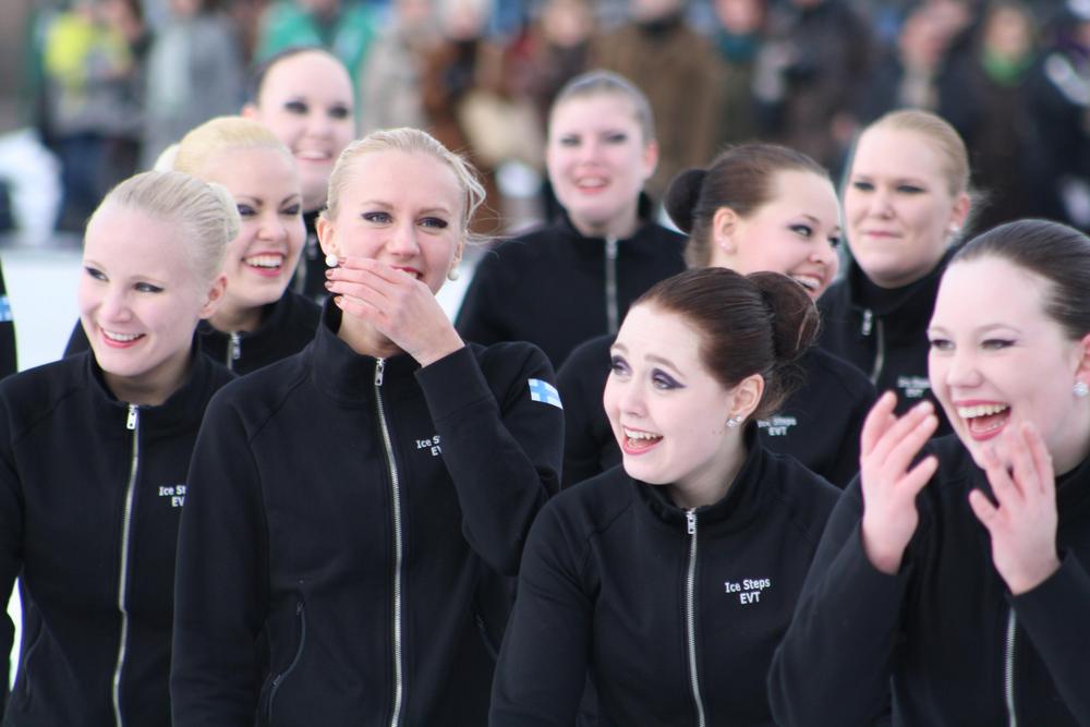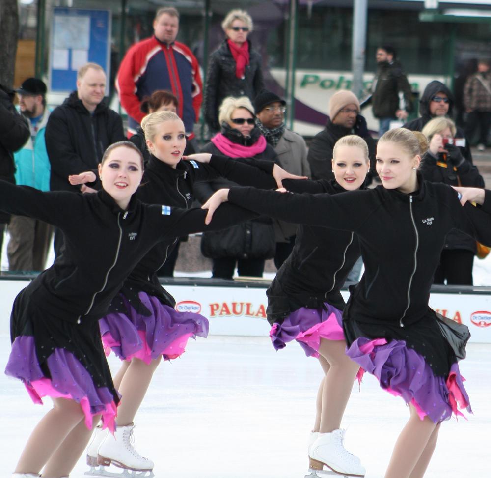 Ice Steps, Dream Steps ja Sunny Steps esiintyivät sunnuntaina Helsingin Rautatietorin Jääpuistossa.