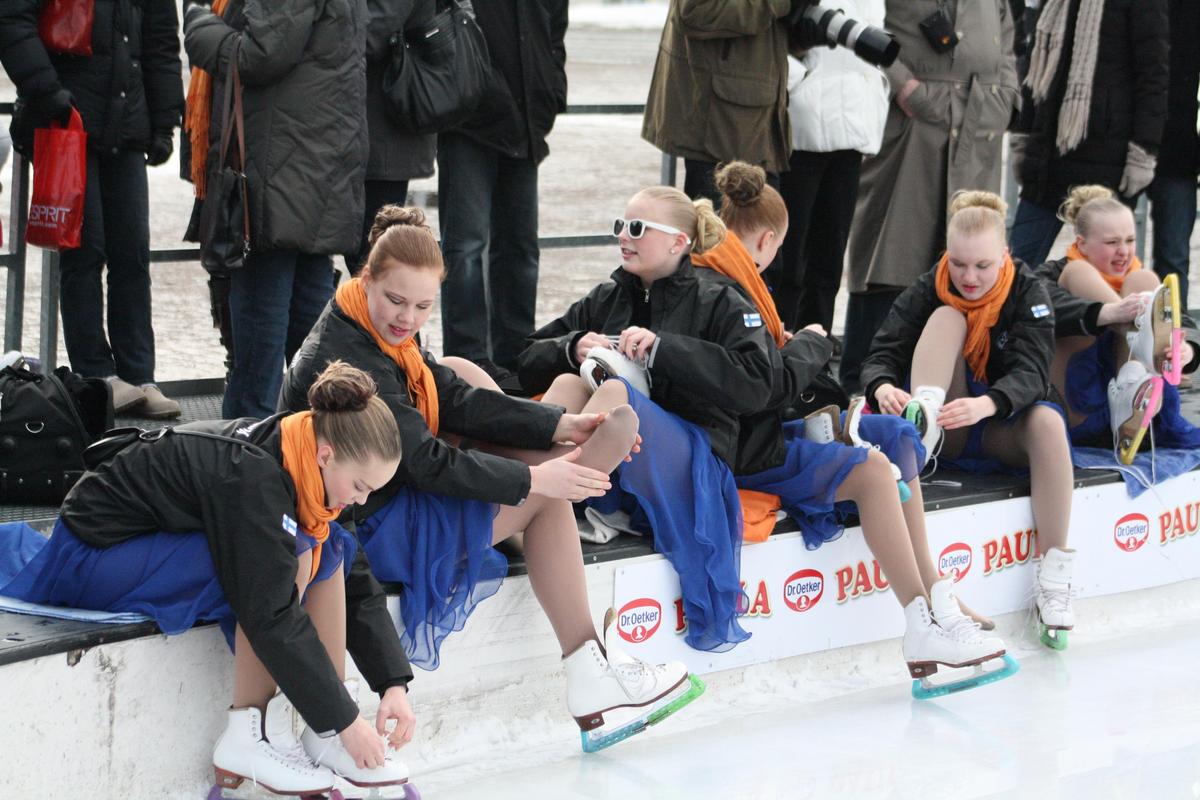 Ice Steps, Dream Steps ja Sunny Steps esiintyivät sunnuntaina Helsingin Rautatietorin Jääpuistossa.