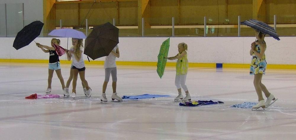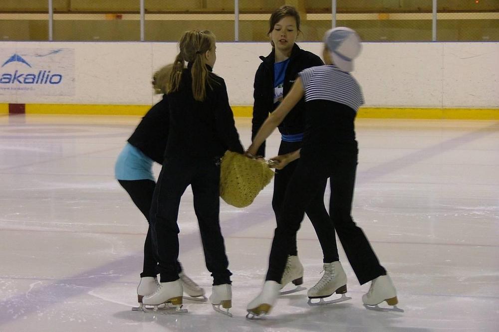 Leiri huipentui perjantaina loppukilpailuun, jossa mitattiin arpomalla koottujen ryhmien improvisointi- ja koreografiataitoja. Ryhmät valitsivat itse aiheensa, tekivät koreografiansa ja hoitivat myös oman puvustuksensa. Yhdellä ryhmistä oli jopa peruukkeja. Muuta esityksissä nähtyä rekvisiittaa olivat sateenvarjot, laukut ja siivousvälineet luutineen ja ämpäreineen. Reilun pelin nimissä voittajien lisäksi myös muut ryhmät saivat samat palkinnot koko viikon uutterasta ahkeroinnista. Joillakin on muuten nyt vähän enemmän tarroja kuin joillakin toisilla – valmentajilla ainakin on nyt noin 500 tarraa vähemmän kuin luistelijoilla yhteensä.