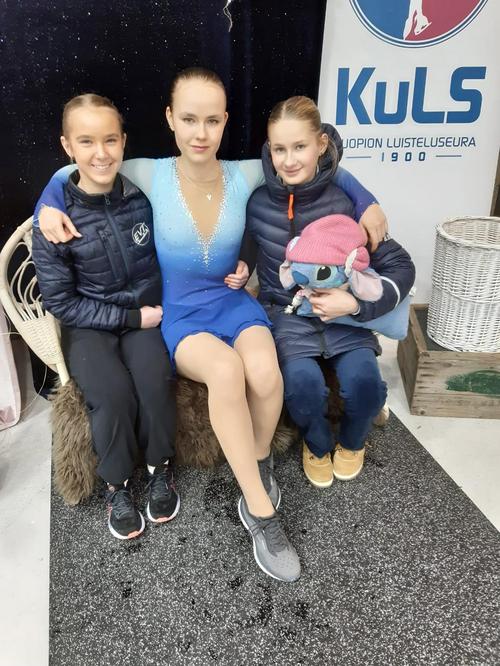 Sunnuntain vapaaohjelmapäivään lähdettiin talvisen lumisateen saattelemana uudella energialla. Nella jatkoi napakalla linjalla tehden puhtaan ohjelman. Pisteetkin kohenivat edellisestä lohkokilpailusta hyvin ja suoritukseen saattoi olla tyytyväinen. Siirin vapaaohjelma oli vapautunut, hyvävauhtinen ja elementitkin sujuivat. Olemme erittäin iloisia kahdesta onnistuneesta kaksoisakselista sekä vain hieman vajaasta kolmoissalchowista. Hieno nousu Siiriltä epäonnisen lyhkärin jälkeen! Jenni onnistui ohjelmassaan niin elementeissä kuin viimeisen päälle viritetyssä esiintymisessä upeasti nostaen yhteispisteitään hienosti yli 80:n. Merkku puolestaan räväytti ohjelmassaan hienon kolmoistulpin sekä kaksoisakselin. Ohjelma oli jälleen vauhdikas ja koreografian hionta on tuonut tulosta.