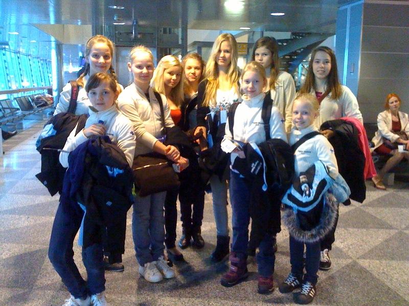 No niin, kaikki olivat tulleet Helsinki Vantaan lentokentälle, kisaajat kuin nyyhkyttelevät vanhemmatkin. Lähdemme siis Italiaan, Canazeihin. Kaikki odottavat innolla että pääsevät lentokoneeseen. Matkalle on menossa ensikertalaisia KV-kisoihin (ulkomaankisat) kuin lentokoneeseenkin. Ikäluokkia on monia. Vanhin on 14v ja nuorin 9v. Nyt ollaan jo viety matkalaukut checkiin ja nopeasti se turvatarkastuskin meni. Ennenkuin huomattiinkaan oltiin jo shoppailemassa lentokentän tuotteilla täytetyissä kaupoissa. Paitsi yksi, joka ilmeisesti oli jännittänyt niin paljon, että rupesi voimaan pahoin, tai ehkä se johtui jostakin muusta, kun kyseessä olikin niin kokenut matkailija kuin kilpailijakin. Kun vihdoin pääsimme yhteisymmärrykseen siitä, että pitäisi lähteä portille odottamaan lentoa eikä sitä yhtä tavaraa ollutkaan pakko ostaa, lähdimme porttia kohti. Mutta yllätykseksemme lento lähti 30 minuuttia myöhässä. Kun vihdoin oltiin lentokoneen penkeillä piti heti nousta koska paikkojen vaihtelu oli virallisesti alkanut. Kun kaikki olivat saaneet paikan minkä halusivat, (tai ainakin melkein....) niin pystyivät kanssamatkustajatkin rauhoittumaan ja nauttimaan lennosta. Lento oli aamulento, joten saimme Finnair aamupalan. Siinä samalla lähdimme seikkailemaan lentokoneessa, jolloin se alussa ollut matkustajien rauha olikin jo rikkoutunut.