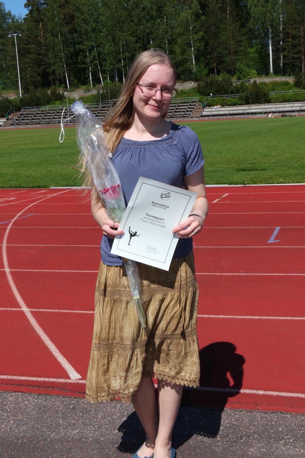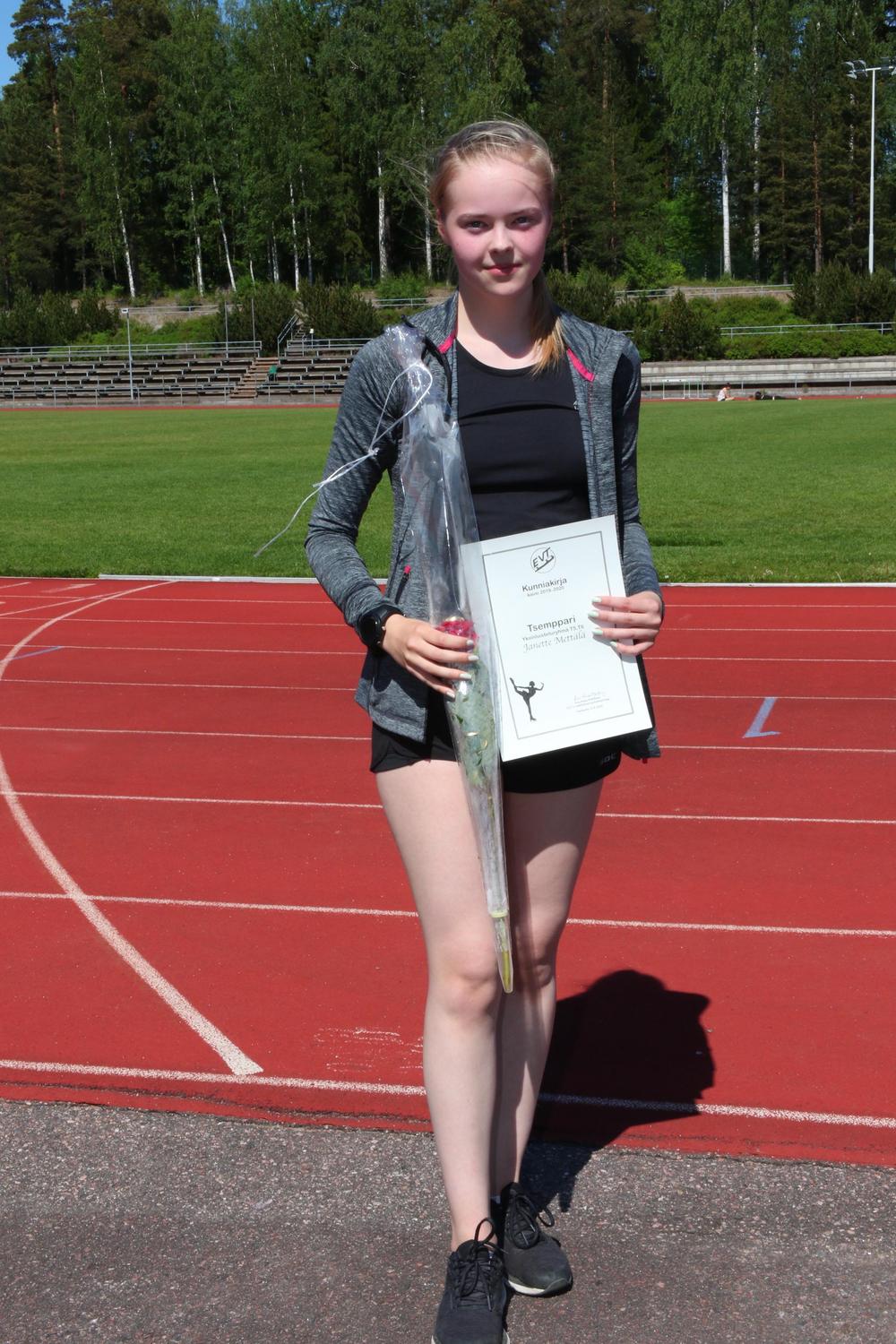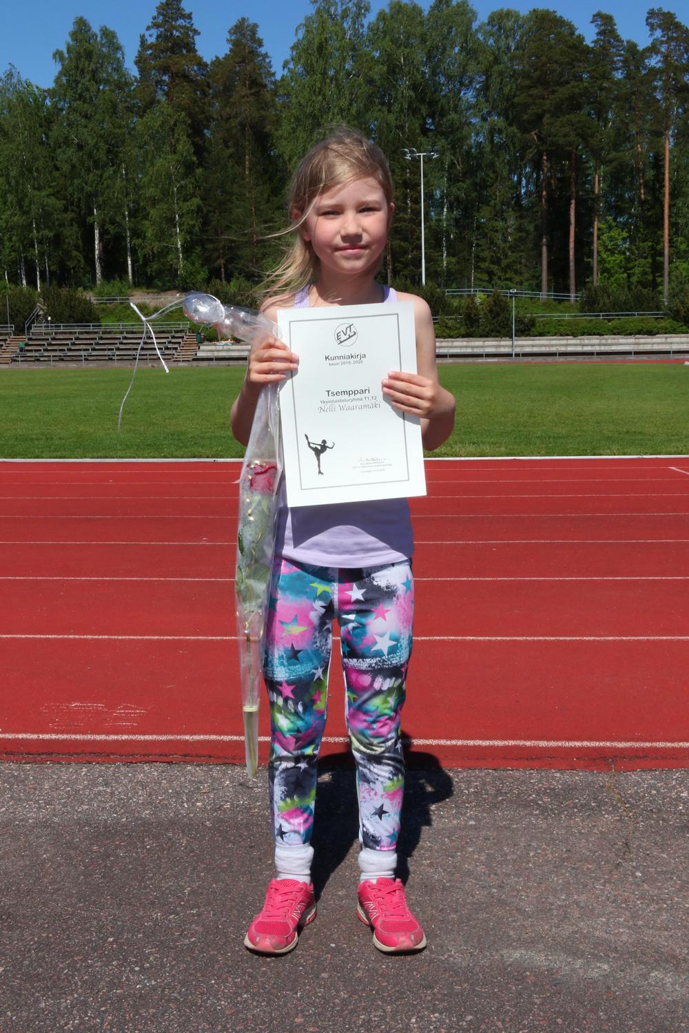 Yksinluistelijoiden palkitsemistilaisuus järjestettiin tänään aurinkoisella Myyrmäen urheilukentällä iloisissa tunnelmissa. Palkitut: